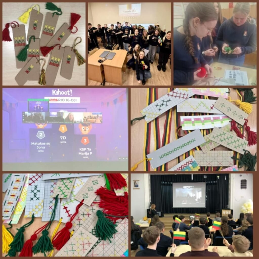 Meninės–kūrybinės veiklos metu mokiniai, panaudodami antrines žaliavas, gamino knygų skirtukus, simbolizuojančius meilę Lietuvai, jos istorijai ir laisvei. Kūrybinis procesas ne tik ugdė vaizduotę, bet ir skatino tvarumo idėjas.
