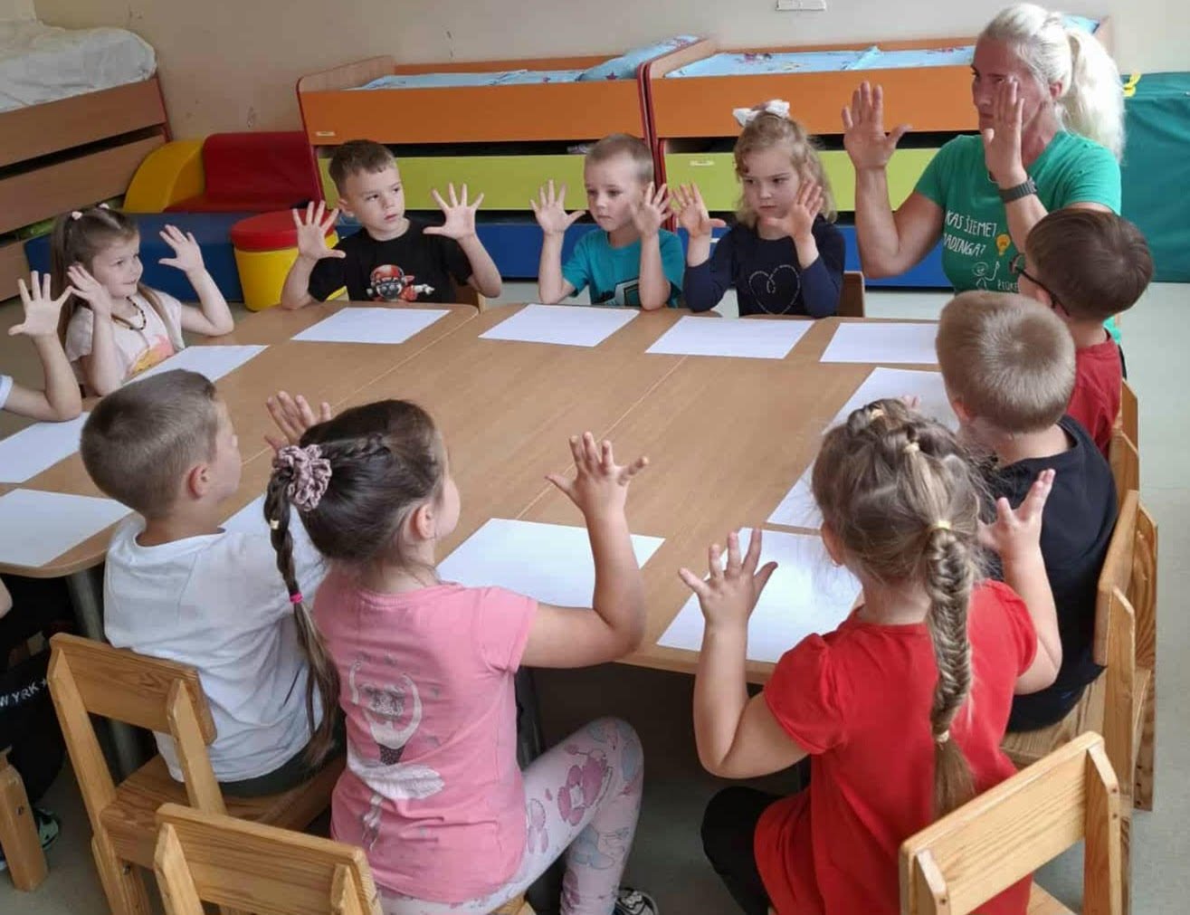 Rugsėjo 16 dieną gimnazijos ikimokyklinio ugdymo grupėse vyko užsiėmimai, kuriuos vedė Tauragės visuomenės sveikatos biuro specialistė Laima Varanavičienė. Mažieji darė mankštą, atliko rankų smulkiosios motorikos lavinimo užduotis. Fizinis aktyvumas, rankų